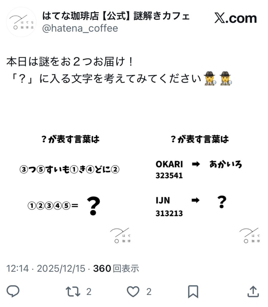 そして、「はてな珈琲店」公式アカウントから投稿された謎。
